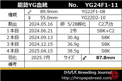 オオクワガタ能勢YG血統 ♂単品87.8mm(YG24F1-11)
