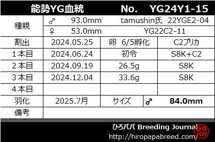 同腹では90.9mm、90.6mm(里子元)が羽化しております。