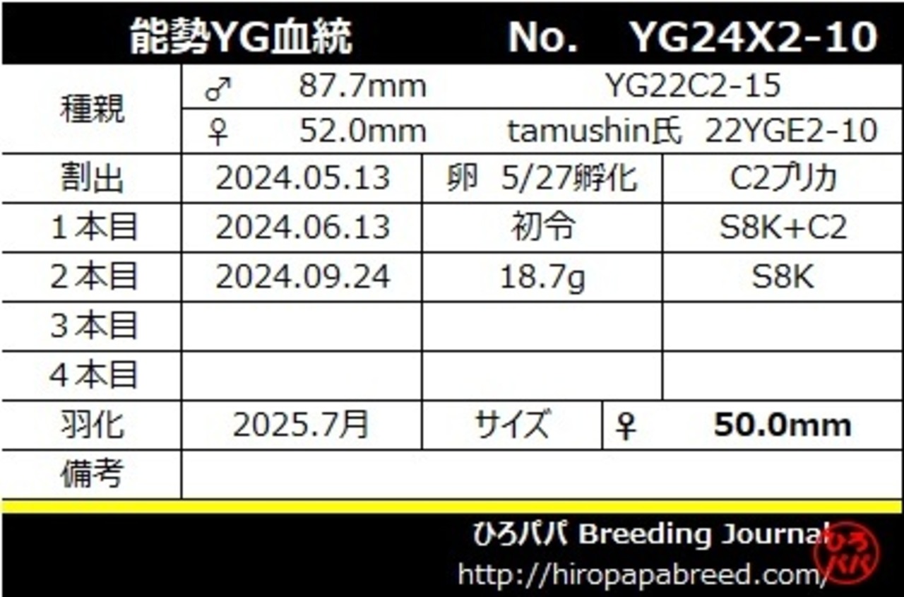 血統背景・飼育記録は画像にてご確認ください。