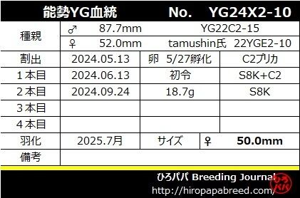 オオクワガタ能勢YG血統 ♀単品50.0mm(YG24X2-10)