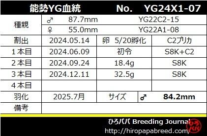 オオクワガタ能勢YG血統 ♂単品84.2mm(YG24X1-07)