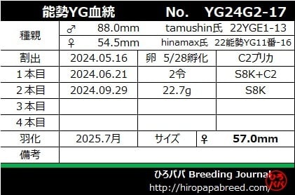血統背景・飼育記録は画像にてご確認ください。