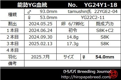 同腹では90.9mm、90.6mm(里子元)が羽化しております。
