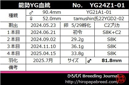 2023年度には90.5mm、90.1mm、90.0mm、88.8mm、88.0mmが羽化。