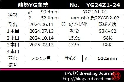 2023年度には90.5mm、90.1mm、90.0mm、88.8mm、88.0mmが羽化。