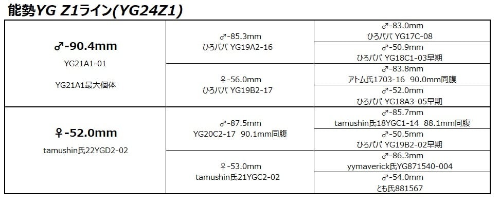 2023年度には90.5mm、90.1mm、90.0mm、88.8mm、88.0mmが羽化。